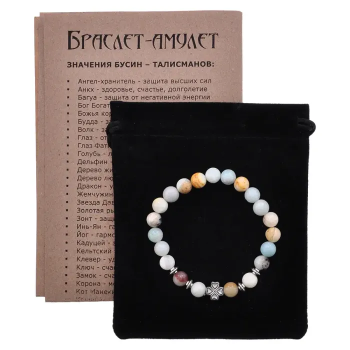 Браслет Клевер с нат.камнем Амазонит 8мм BSH-06-26S