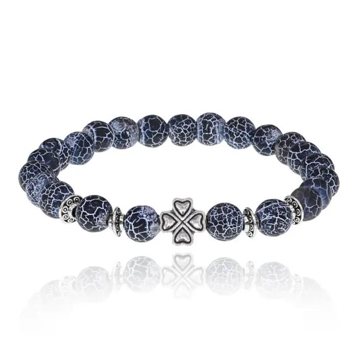 Браслет Клевер с нат.камнем синий Африканский агат 8мм BSH-06-27S
