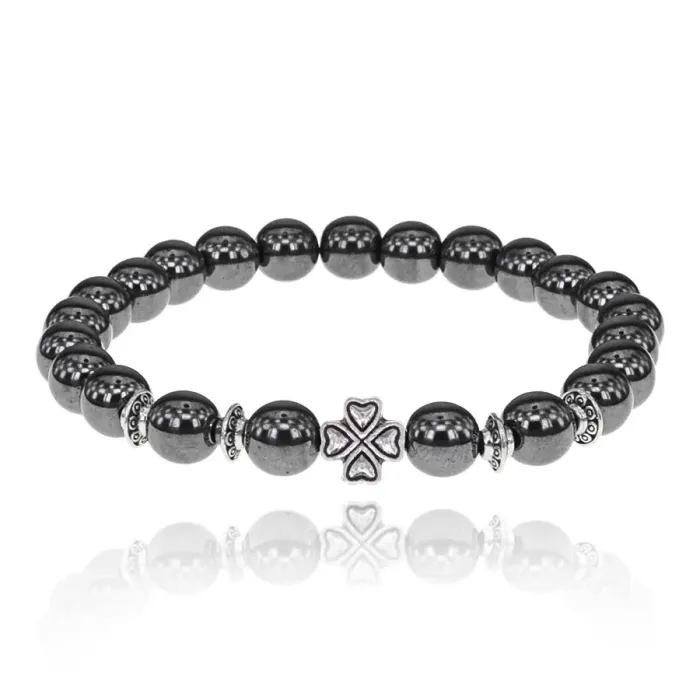 Браслет Клевер с синт. камнем Гематит (не магнит.) 8мм BSH-06-28S