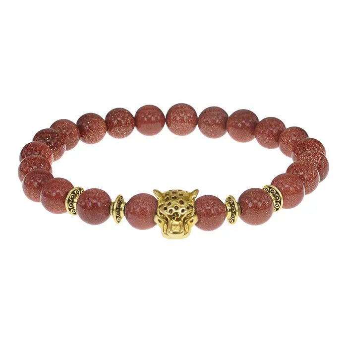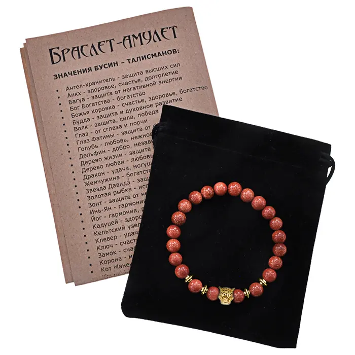 Браслет-амулет Леопард с синт. камнем Коричневый авантюрин 8мм BSH-07-01S