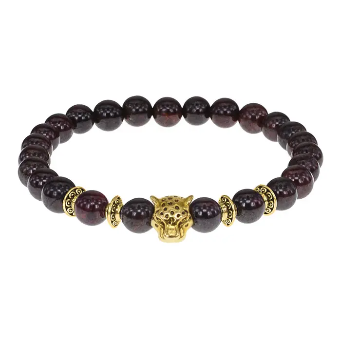 Браслет-амулет Леопард с нат. камнем Гранат 8мм BSH-07-06S