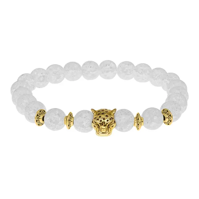 Браслет-амулет Леопард с синт. камнем Сахарный кварц 8мм BSH-07-16S