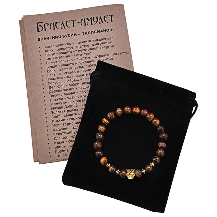 Браслет-амулет Леопард с нат. камнем Тигровый глаз 8мм BSH-07-19S