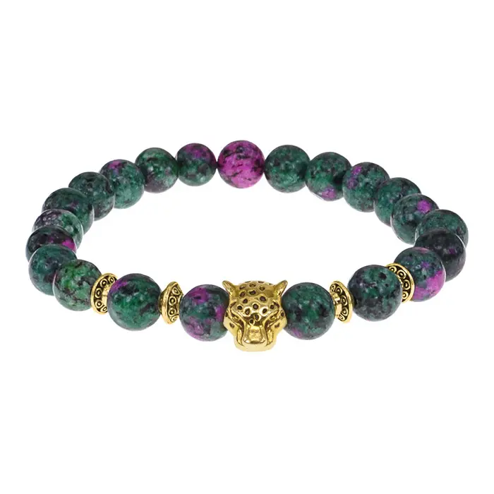 Браслет-амулет Леопард с синт. камнем Цоизит 8 мм BSH-07-22S