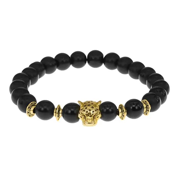 Браслет-амулет Леопард с синт. камнем Шунгит 8мм BSH-07-24S