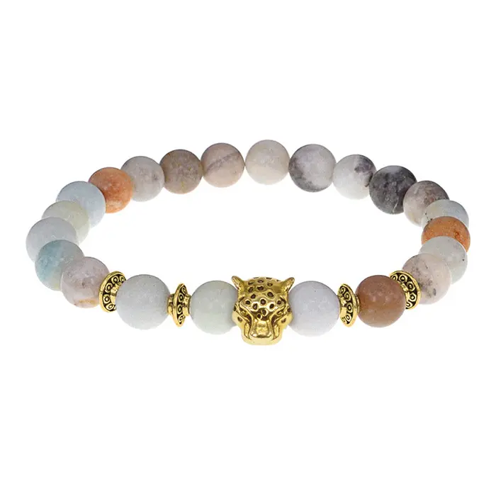 Браслет-амулет Леопард с нат. камнем Амазонит 8мм BSH-07-26S