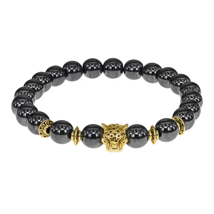 Браслет-амулет Леопард с синт. камнем Гематит (не магнит.) 8мм BSH-07-28S
