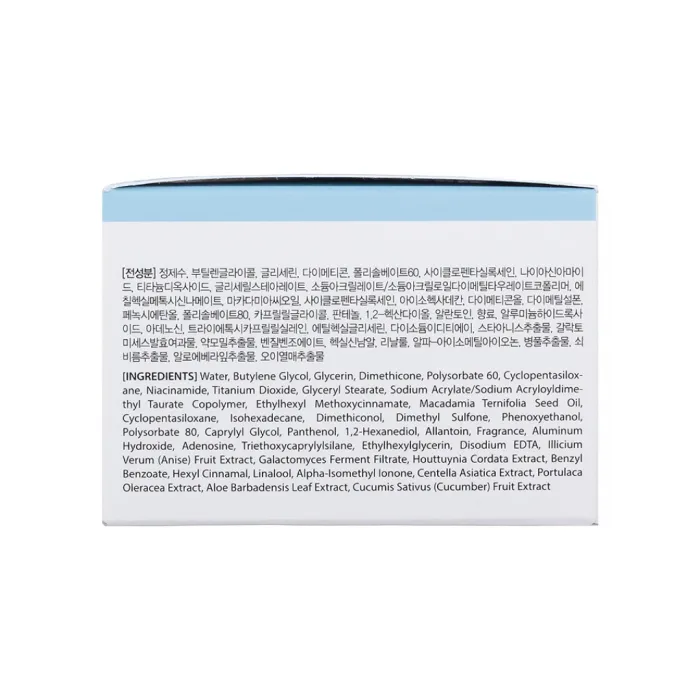 Вода, бутиленгликоль, глицерин, диметикон, полисорбат 60, циклопентасилоксан, ниацинамид, диоксид титана, глицерилстеарат.