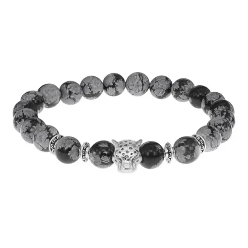 Браслет-амулет Леопард с нат. камнем Снежный обсидиан 8мм BSH-07-14S