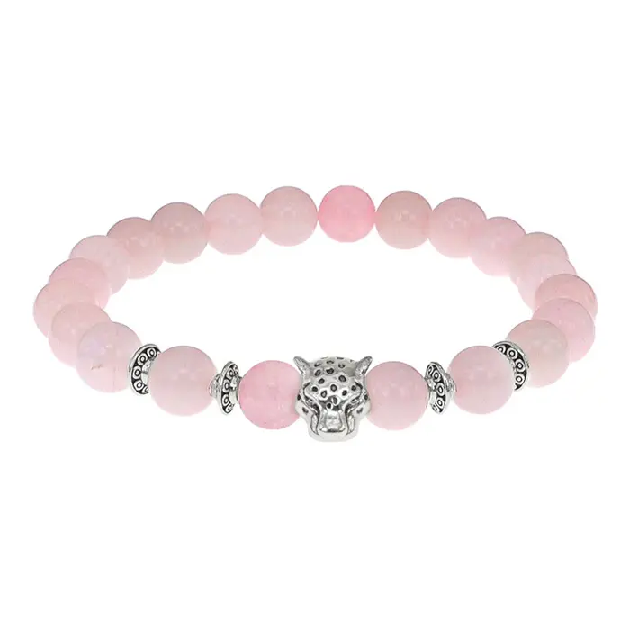 Браслет-амулет Леопард с нат.камнем Розовый кварц 8мм BSH-07-15S