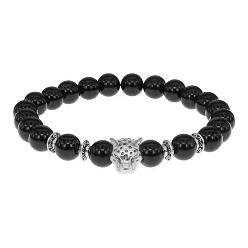 Браслет-амулет Леопард с нат. камнем Черный агат 8мм BSH-07-23S