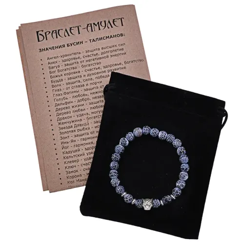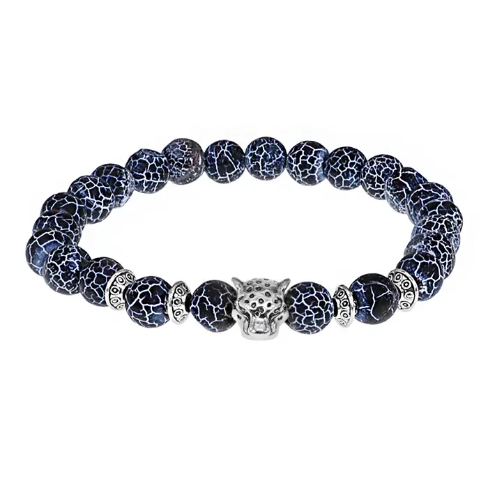 Браслет-амулет Леопард с нат. камнем синий Африканский агат 8мм BSH-07-27S