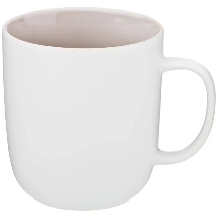 Кружки выполнены из упрочненного фарфора, который отличается повышенной прочностью. Поверхность изделий покрыта глазурью с комбинированной текстурой, сочетающей матовые и глянцевые участки. Конструкция включает удобную ручку стандартной формы.
