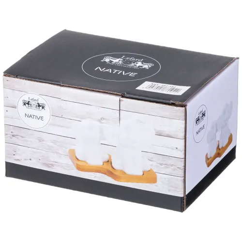 Набор для специй Native от Lefard состоит из двух фарфоровых солонок или перечниц в форме слонов и деревянной подставки. Основная функция набора — хранение и дозирование сыпучих специй. Ключевые особенности включают использование прочного фарфора Durable Porcelain и натурального бамбука в конструкции.