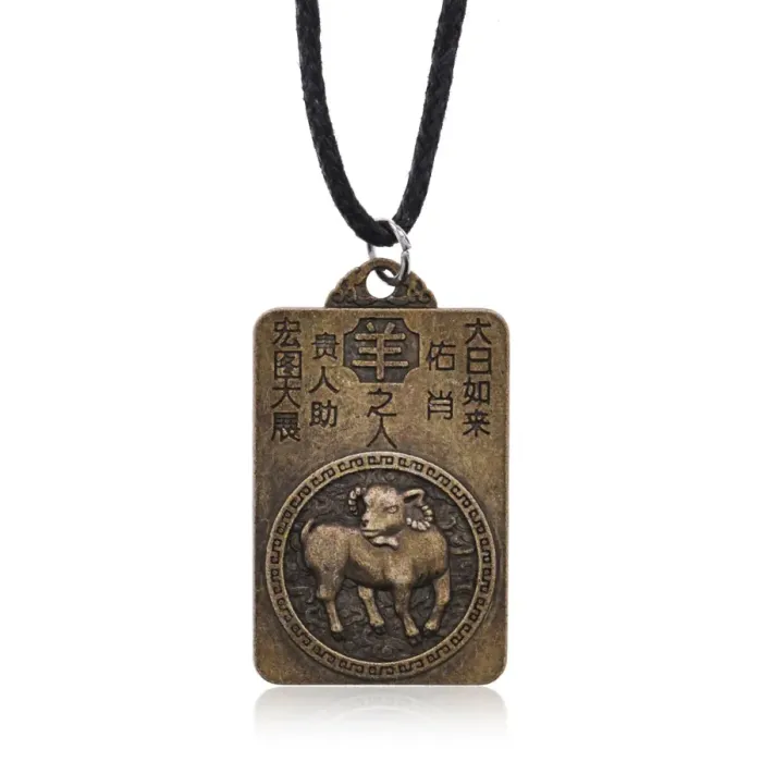 Амулет на шнурке, посвящённый году Козы по восточному гороскопу. Изготовлен из металла с покрытием под бронзу.