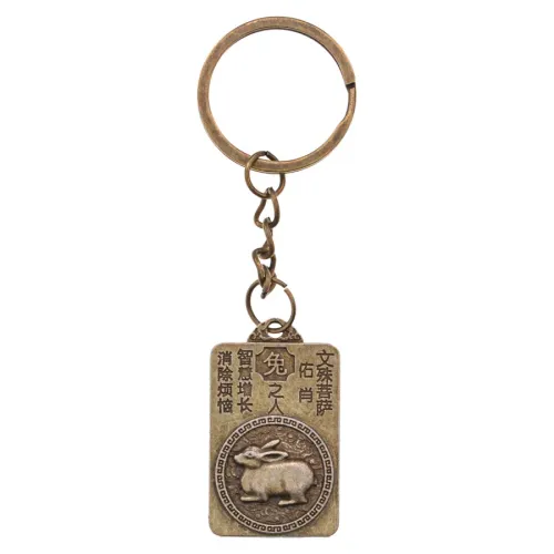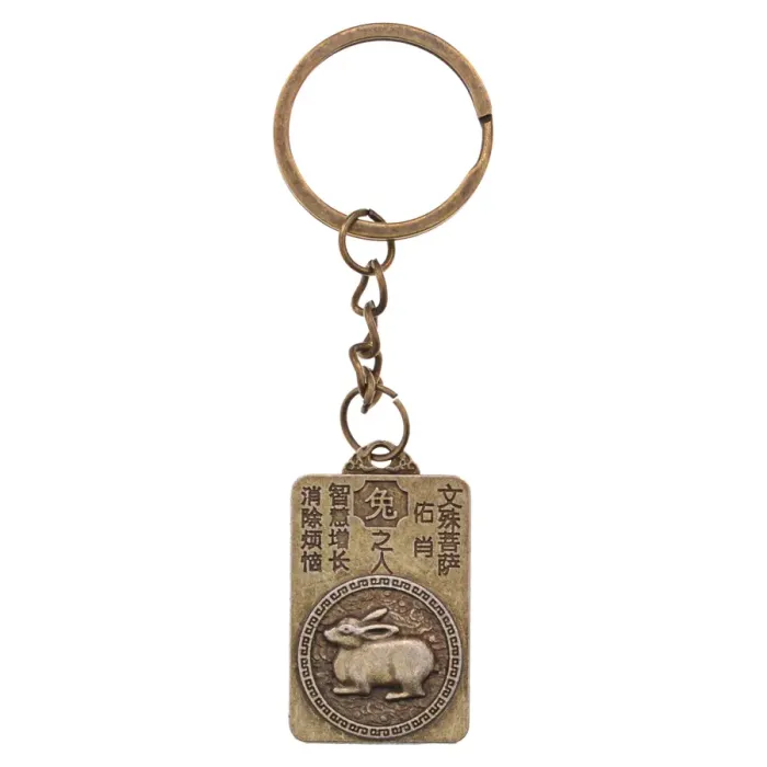 Брелок в виде символа года Кролика по восточному гороскопу. Изготовлен из металла с покрытием под бронзу.