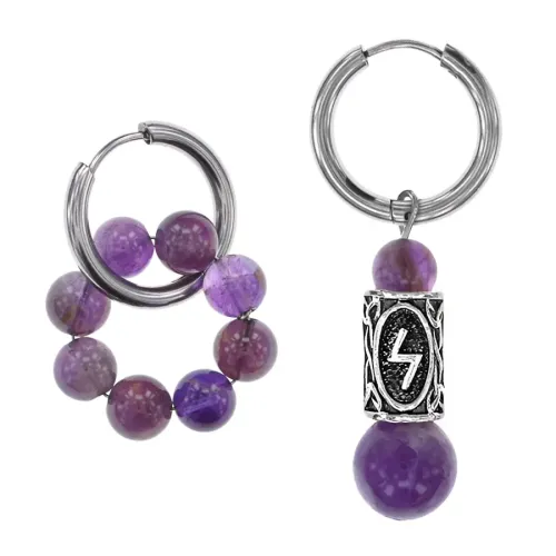 Серьги Конго с руной Соулу и нат.камнем Аметист SEC-04-01