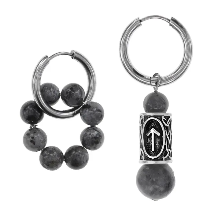 Серьги Конго с руной Тейваз и нат.камнем Лабрадор SEC-04-19