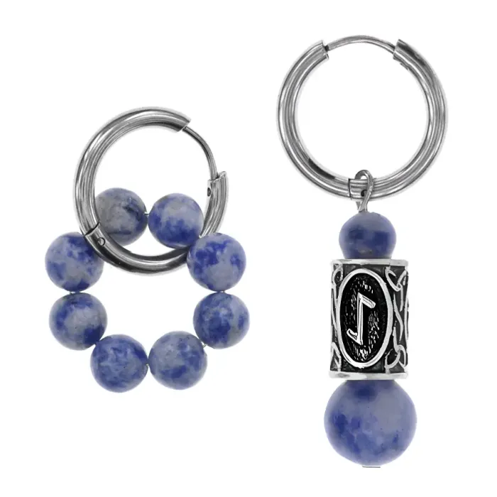 Серьги Конго с руной Эйваз и нат.камнем Содалит SEC-04-21