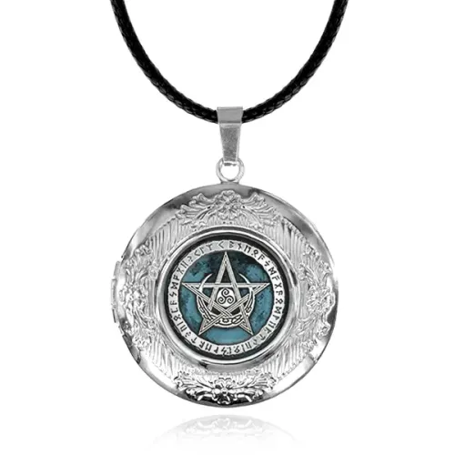 Арома-амулет Лунный пентакль AA071 — это изысканный аксессуар, который сочетает в себе красоту и защитные свойства. Изготовленный из бижутерного сплава с покрытием под серебро, он станет не только стильным дополнением к образу, но и мощным оберегом.