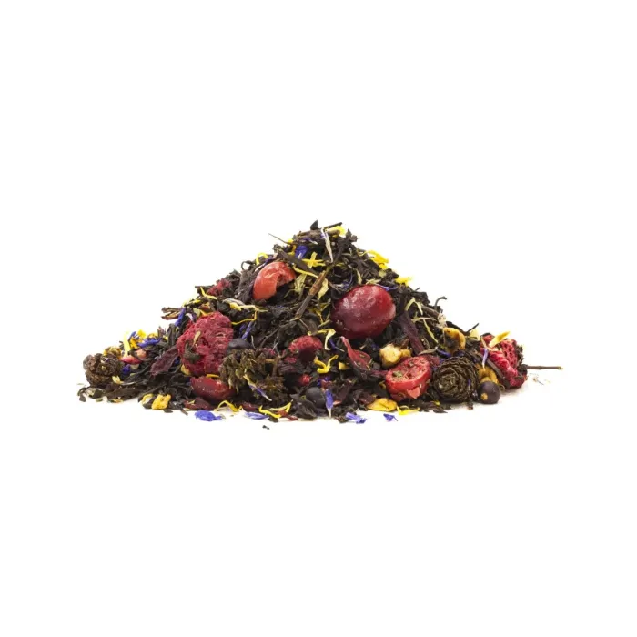 Насыщенный черный чай, ароматизированный душистыми травами, ягодами и цветами. Напиток обладает глубоким хвойным характером, в основе которого — купаж, где классическая терпкость чая гармонично сочетается с лесными и фруктовыми нотами.