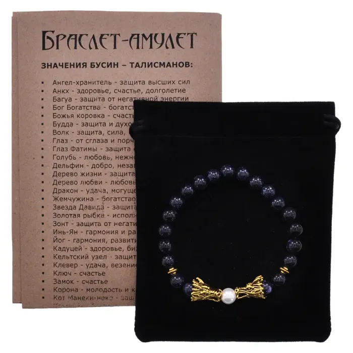 Браслет-амулет Дракон с синт. камнем Синий авантюрин 8мм BSH-08-02G