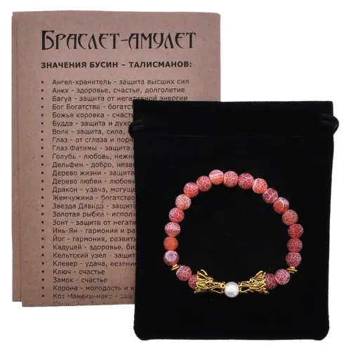 Браслет-амулет с фигуркой дракона и бусинами из натурального африканского агата.