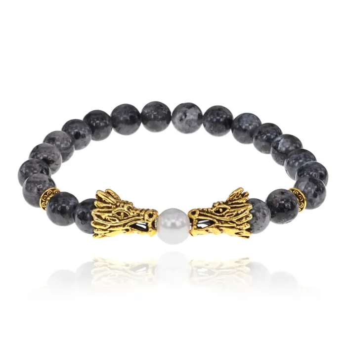 Браслет-амулет Дракон с нат.камнем Лабрадор 8мм BSH-08-08G