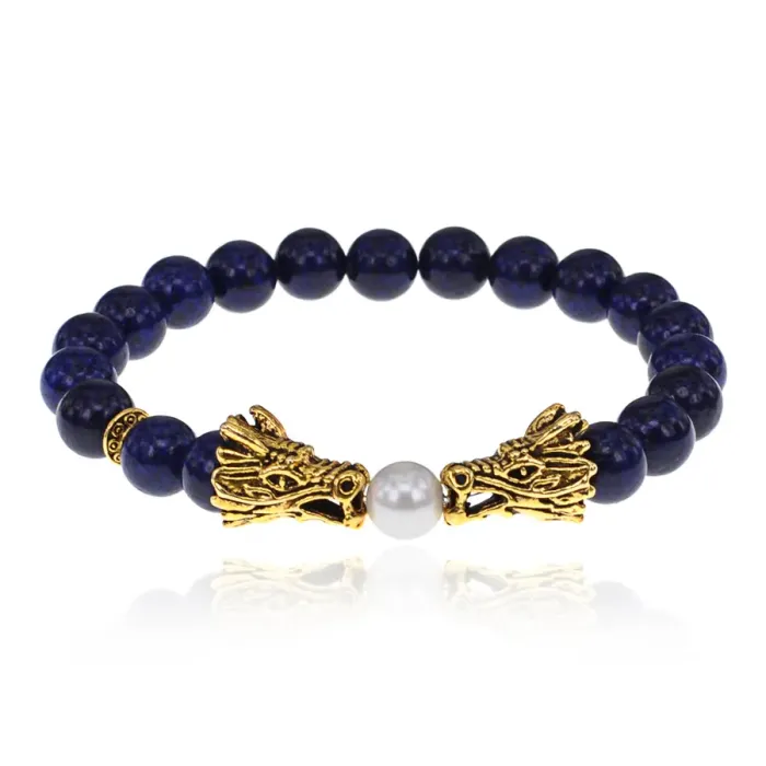 Стрейч-браслет с символикой дракона и бусинами из натурального лазурита.