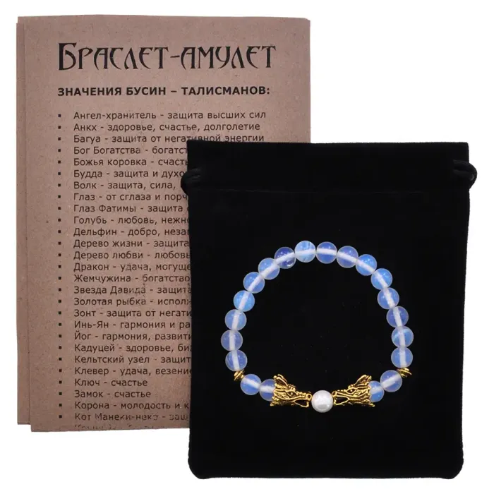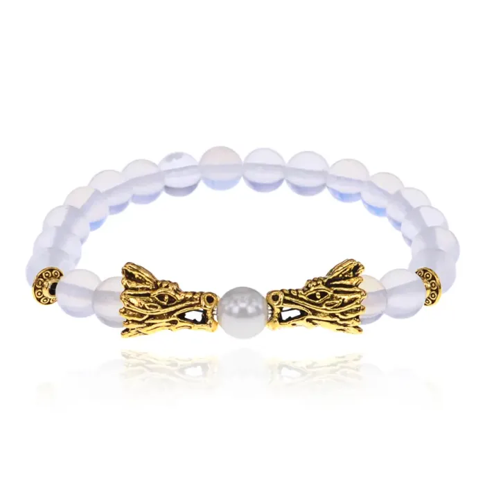 Браслет-амулет Дракон с синт. камнем Лунный камень 8 мм BSH-08-11G