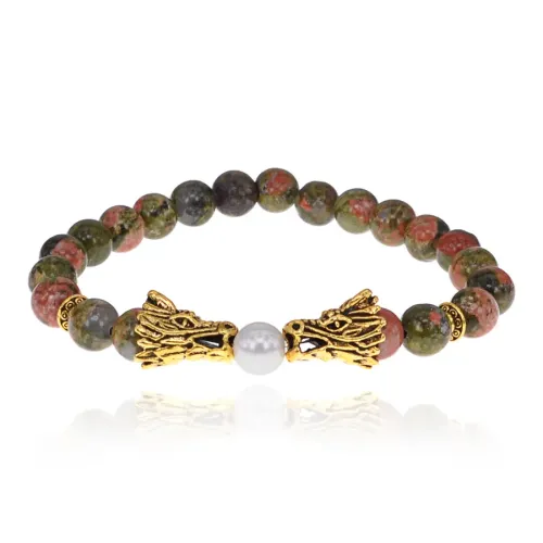 Браслет-амулет Дракон с нат.камнем Унакит 8мм BSH-08-20G