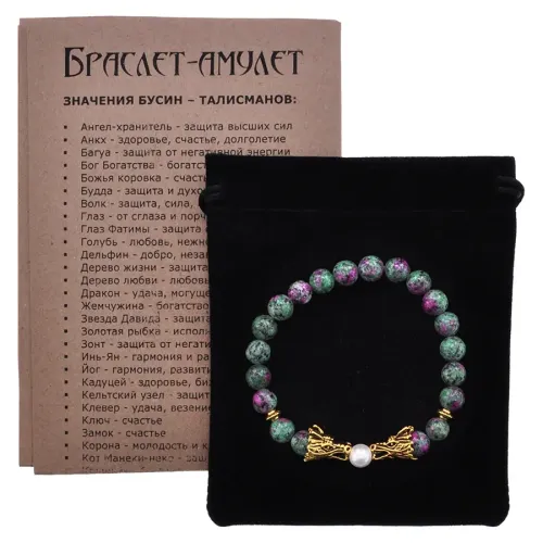 Браслет-амулет с подвеской в виде дракона и бусинами из синтетического камня.