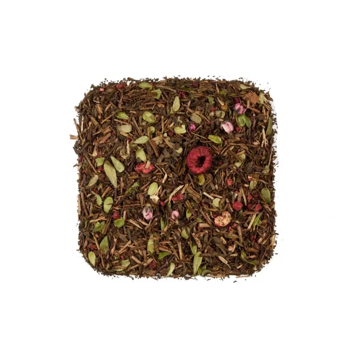 Японский зелёный чай ходзича с малиной — это тёплый, древесно-ореховый настой, обогащённый яркой ягодной сладостью. Аромат напоминает малиновое варенье, а вкус сочетает лёгкую орехово-карамельную основу с долгим, согревающим послевкусием.