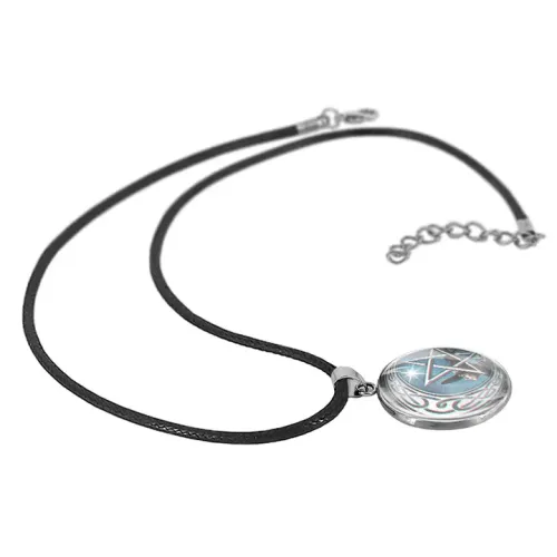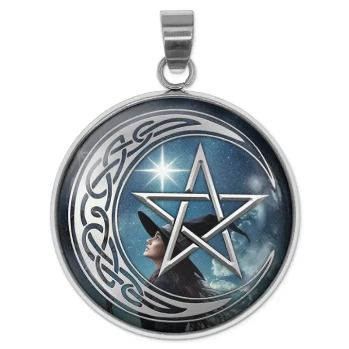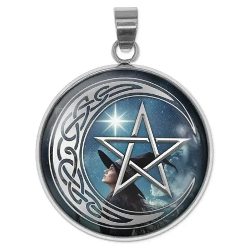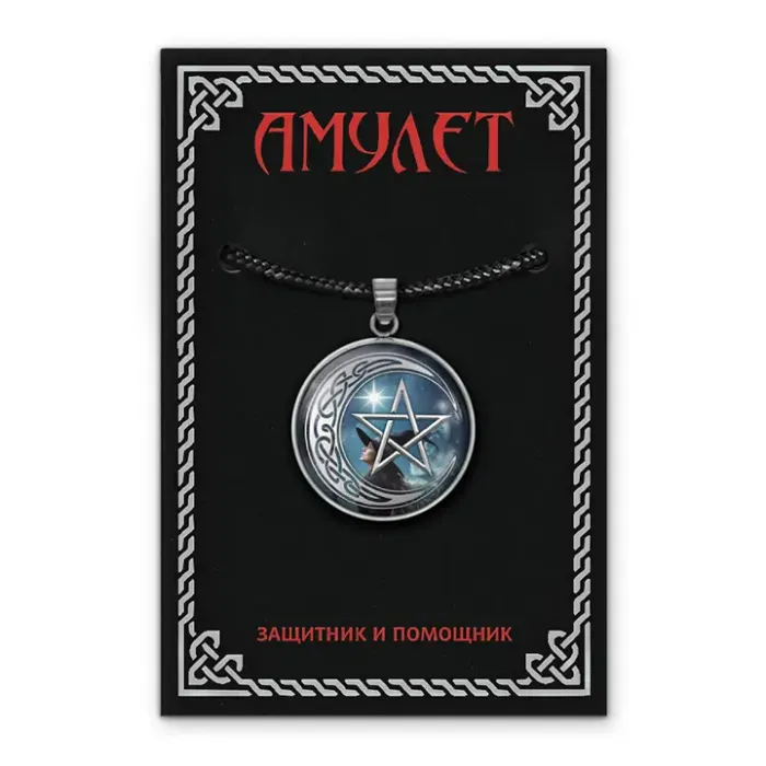 Кулон-амулет из нержавеющей стали с выпуклой стеклянной линзой.