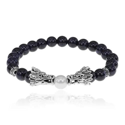 Браслет-амулет Драконы с синт. камнем Синий авантюрин 8мм BSH-08-02S
