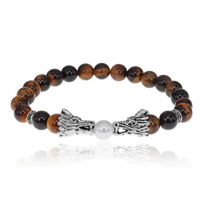 Браслет-амулет Драконы с нат. камнем Тигровый глаз 8мм BSH-08-19S