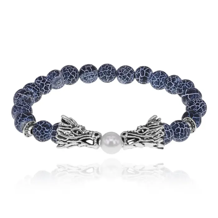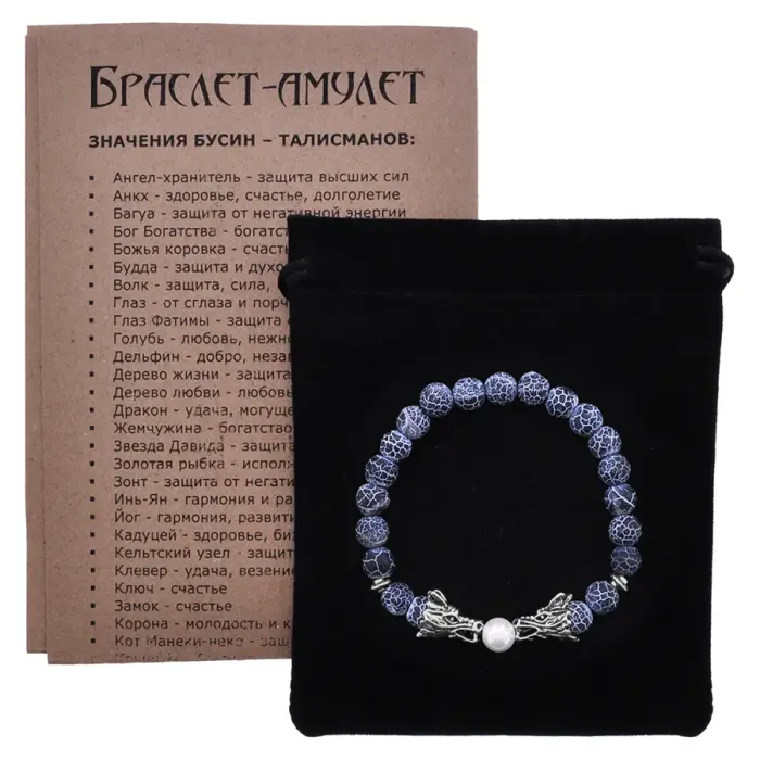 Браслет-амулет Драконы с нат.камнем синий Африканский агат 8мм BSH-08-27S