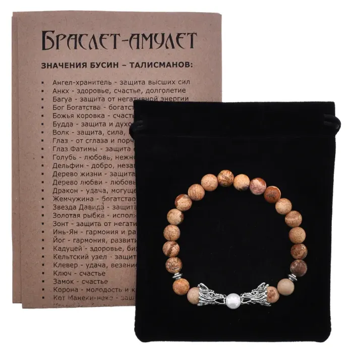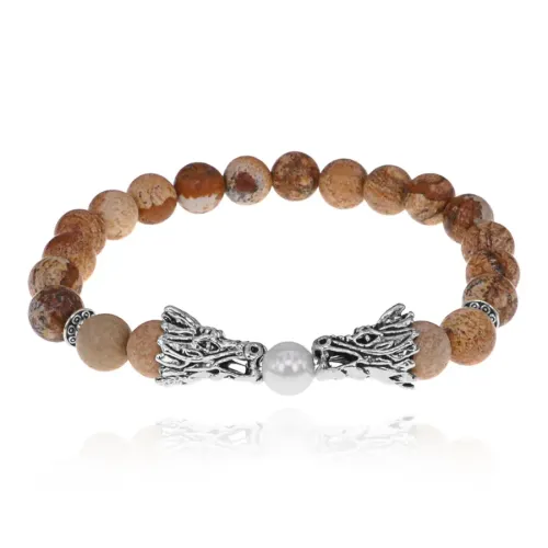 Браслет-амулет Драконы с нат. камнем Песочная яшма 8мм BSH-08-30S