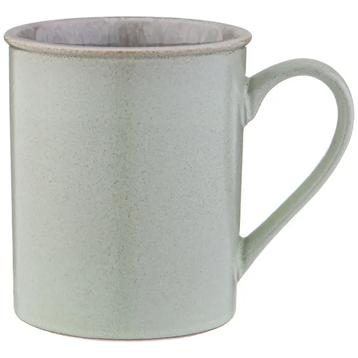 Кружка произведена из каменной керамики, обожжённой при температуре от 1100 до 1400 градусов, что повышает её прочность и снижает вес. Внутренняя поверхность покрыта глянцевой глазурью, а внешняя — матовой реактивной глазурью, что обеспечивает гигиеничность и защиту от впитывания запахов. Конструкция с удобной ручкой способствует комфортному использованию.