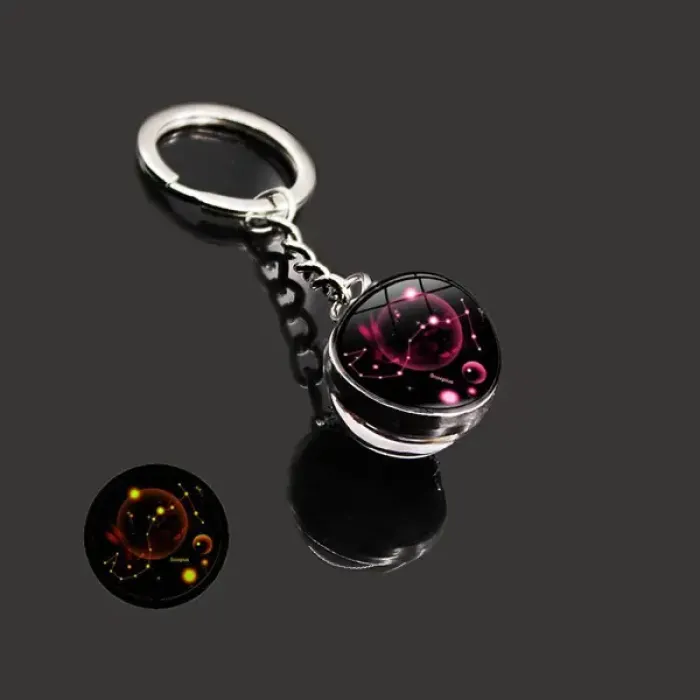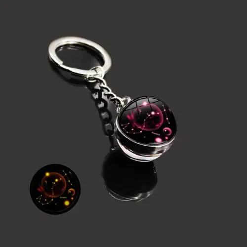 Брелок с символикой знака зодиака Скорпион. Изготовлен из металла и стекла, обладает свойством свечения в темноте.