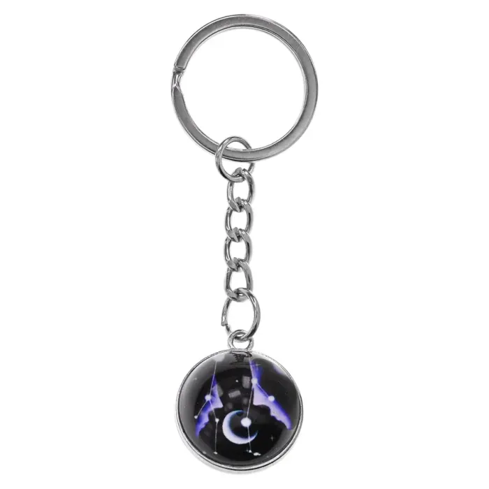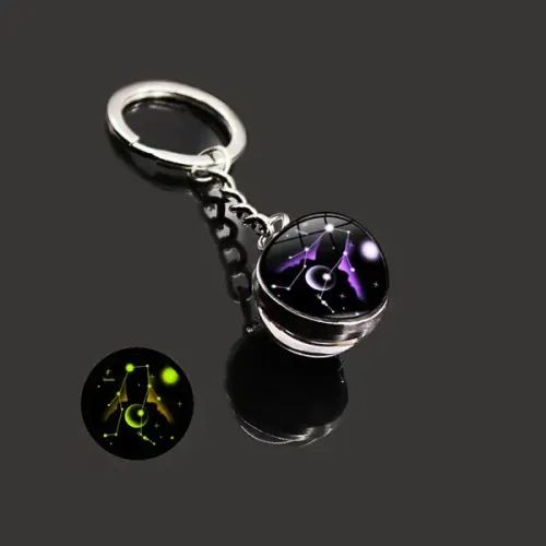Брелок для ключей в виде знака зодиака Близнецы из металла и стекла, светящийся в темноте.