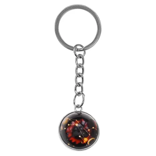 Брелок для ключей в виде знака зодиака Лев, изготовленный из металла и стекла, со светящимся покрытием.