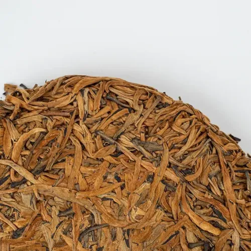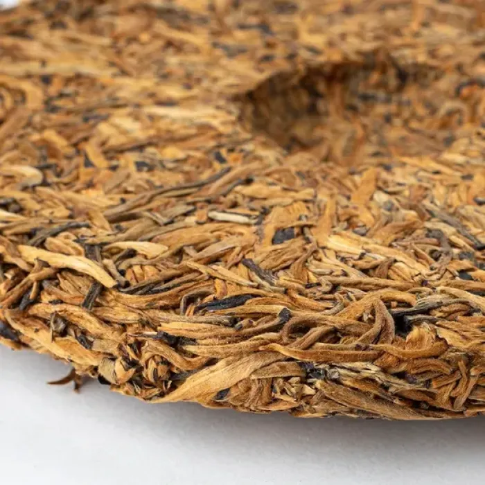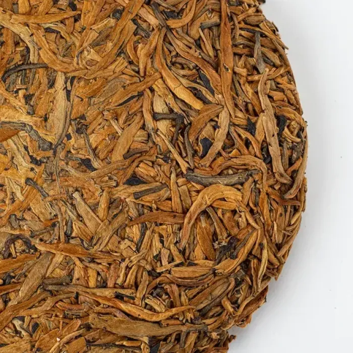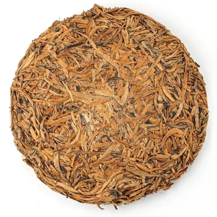 Элитный красный чай из провинции Юньнань, спрессованный в блин и состоящий преимущественно из золотистых почек. Его настой обладает ярким апельсиново-золотистым цветом, а вкус раскрывается многогранно — от ягодной кислинки и нот кураги до медовой сладости и тёплых пряных оттенков.