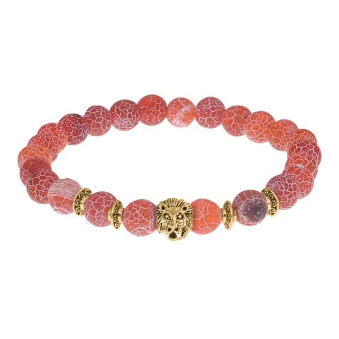 Браслет-амулет Лев с нат. камнем Африканский агат 8мм BSH-09-04G