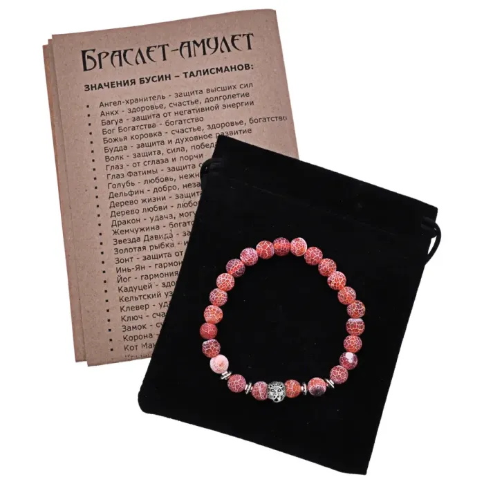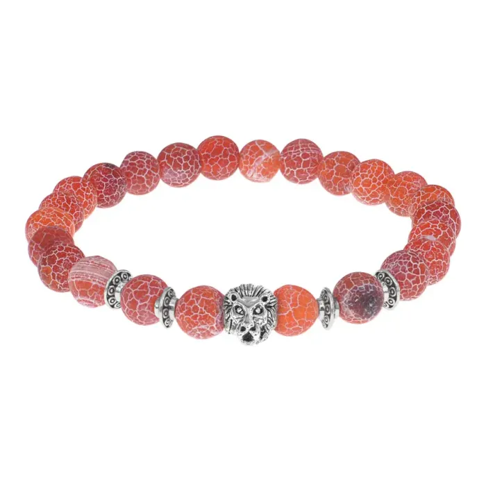 Браслет-амулет Лев с нат. камнем Африканский агат 8мм BSH-09-04S