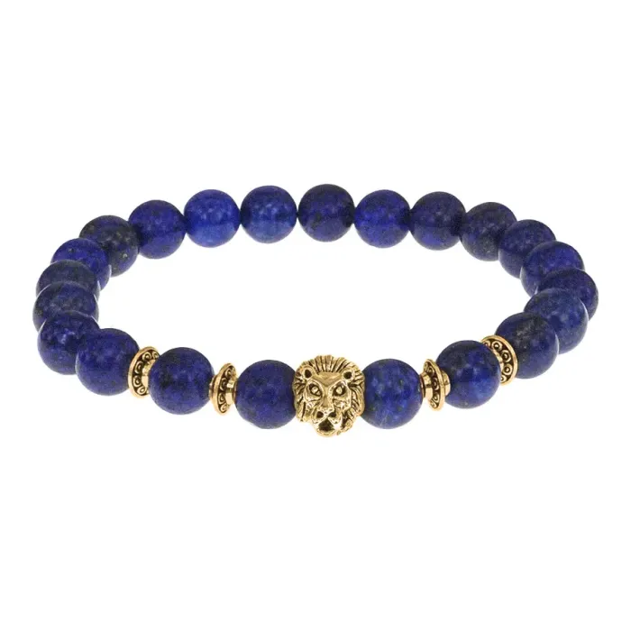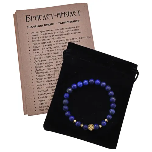 Браслет-амулет Лев с нат.камнем Лазурит 8мм BSH-09-10G