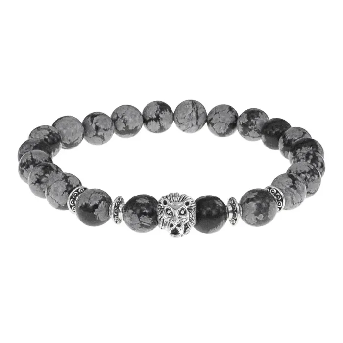 Браслет-амулет Лев с нат.камнем Снежный обсидиан 8мм BSH-09-14S