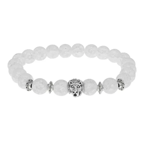 Браслет-амулет Лев с синт. камнем Сахарный кварц 8мм BSH-09-16S