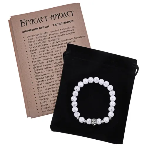 Браслет-амулет с фигуркой льва и синтетическим камнем сахарный кварц.