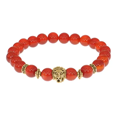 Браслет-амулет Лев с нат. камнем Сердолик 8мм BSH-09-17G